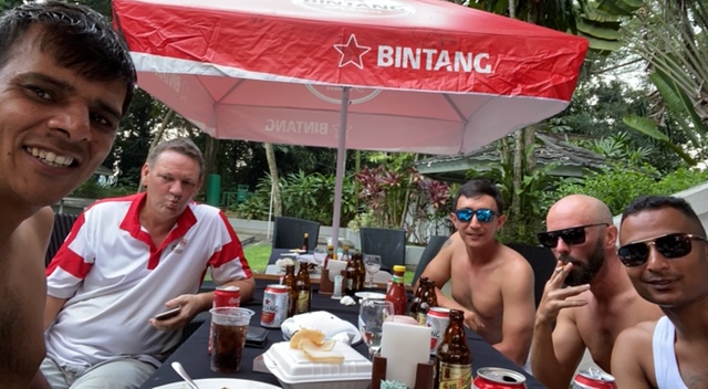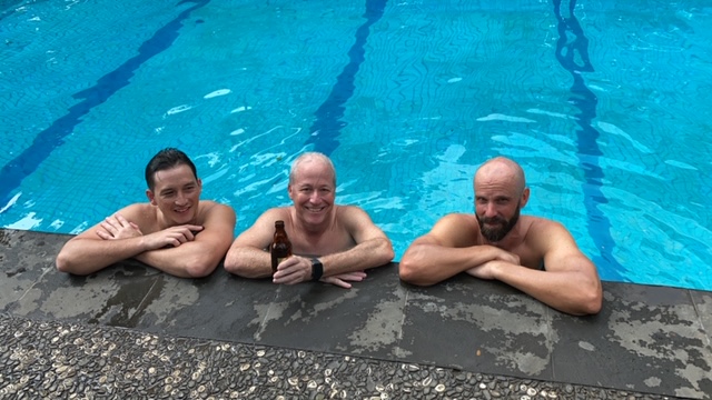 They were fearless and had the right stuff (including beer) to take on the Jagorawi challenge. Off the tee, Nick was hitting monster drives all day. Mike never wavered when hitting into trouble and made impressive recovery shots throughout the day. Big Daddy’s consistently powered his 3-wood onto the greens and John’s 20 meter chip into the hole brought the accolades he constantly seeks on and off the course. While there were errant arrows shot by all, the group had specular day and managed not to drown in the pool afterwards.