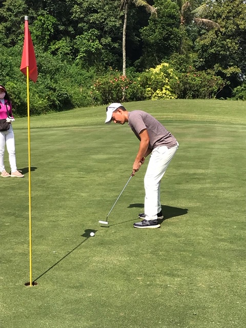 Chris made an excellent start with a birdie on the first hole but although playing some good golf, had too many OB’s ,which inevitably cost him. Sari started off well, with some consistent early holes, however every hole at Jagorawi is challenging and Sari soon found out that you need to play consistently for 18 holes.