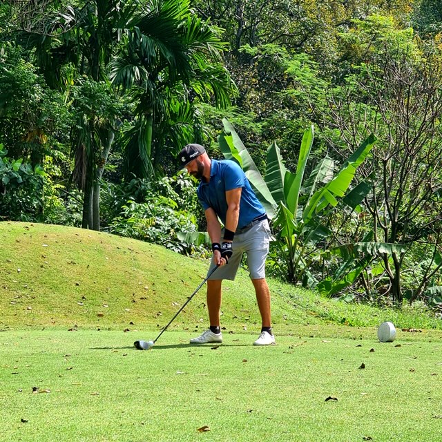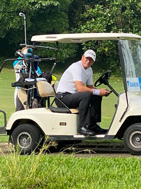 Tony, Fernando, Febian and Ola played together. It was a long round! Ola who played 3 rounds a year, started with 6 bad holes , then had 6 great holes in the middle and finished with 6 so-so holes. Febian started with a string of double pars but then recovered on 7-8 with 2 pars in a row. He has a good swing and will get better. Tony started great and then faded fighting the tough conditions.