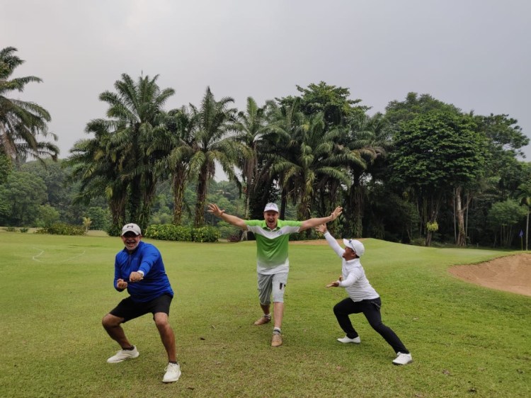 Emil played with team mates Ruth and Nick for the 4 Club Challenge. This took a lot of course management especially at Jagorawi Golf. With Ruth having colourful balls and after adjusting on 9 holes with her club, amazingly picked up her game and her signature putts came through.
