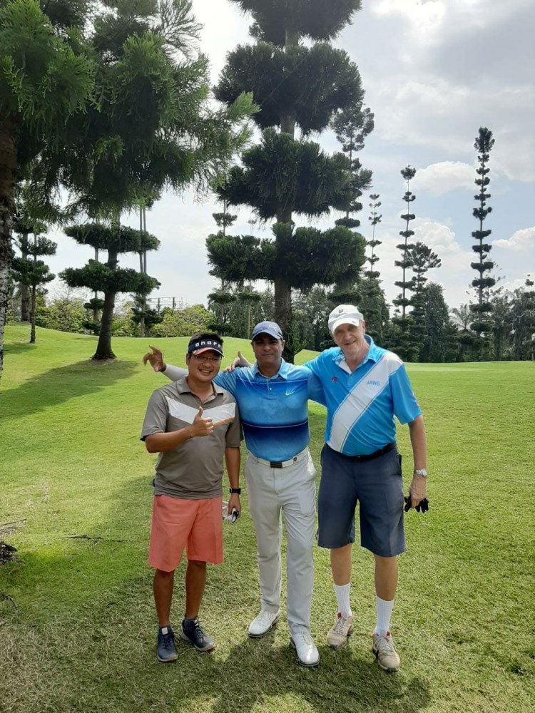 Ade, Febian and Westra played together. Westra played a consistent game with a Gross 42 and Gross 43. Ade also played well with Gross 45 and 44 and played mostly par, bogey golf. Febian played 6 above his handicap and made some good pars. A fun round for the three players!