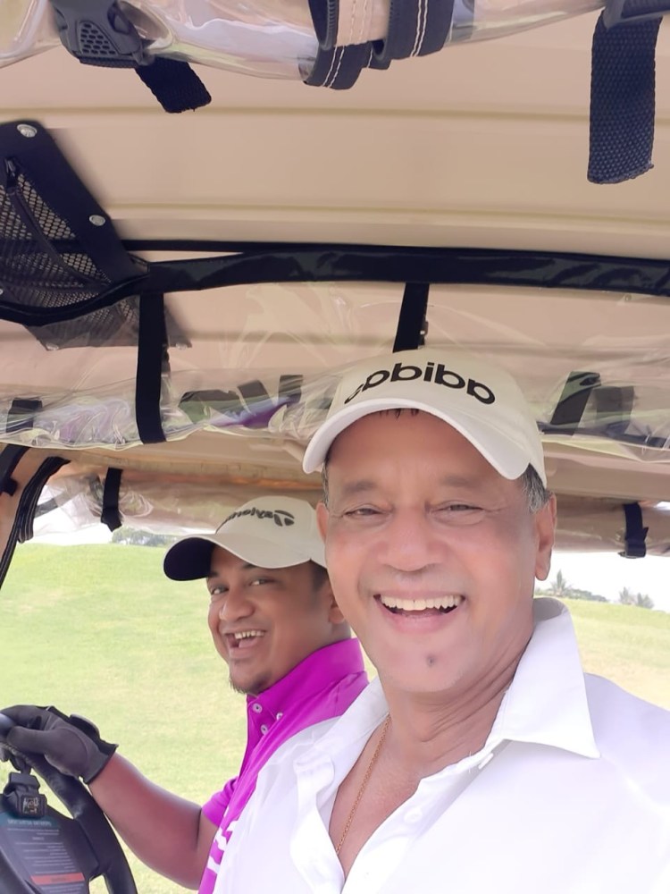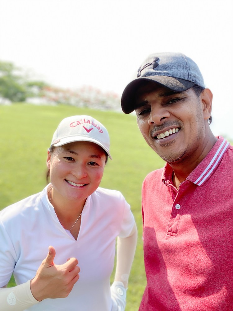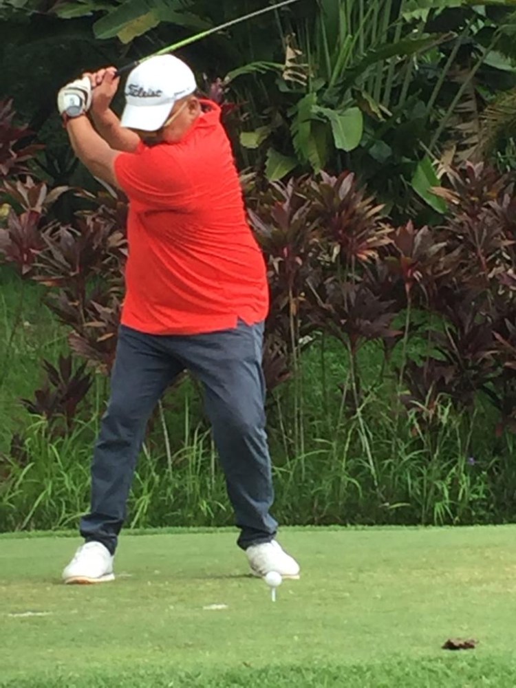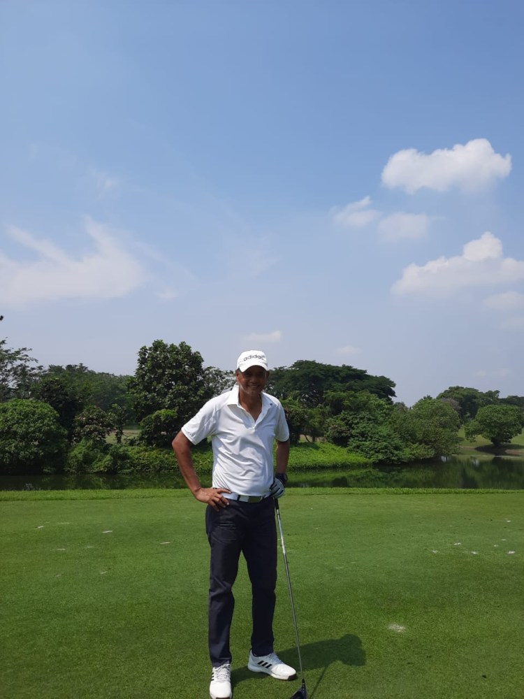 A fun day out for the 3 ball of Dea , Wahyu and Divya. Wahyu started like a tour pro , playing precision laser like shots and putting with steel like nerves and ending his front 9, one under 35.