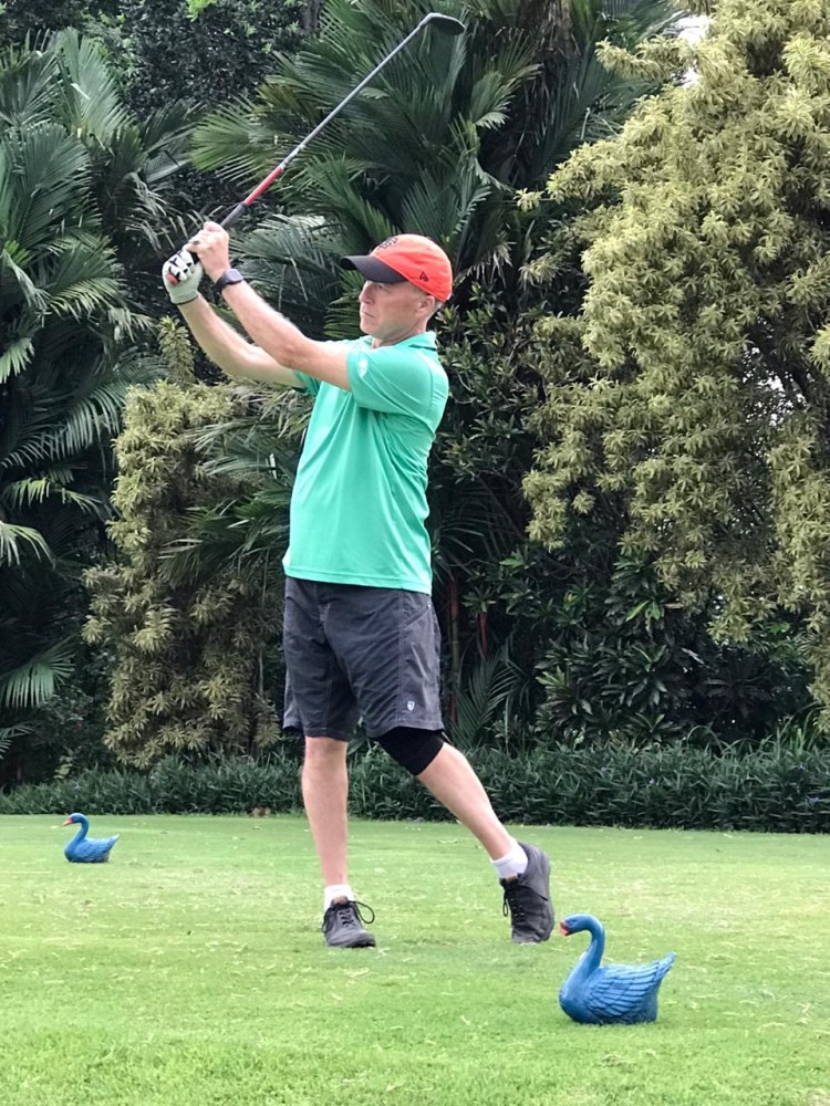 The threesome of Chris, Yuris and Febian started on hole one. Yuris started badly and continued his poor form throughout the round apart from the odd par. He did generally improve on the back nine with some solid drives.