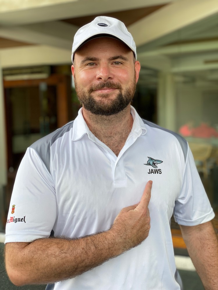 Although not long off the tee Bob forever keeps the ball in play and with a sharp short game and solid putting stroke it’s not surprising he has become a regular on the Jaws Leaderboard. Well played Bob! Simon, the fourth ball in the flight got off to a shaky start, with some mishits off the tee putting him in a spot of bother too often. Luckily a cool head and careful shot selection turned many double bogey’s into bogey’s and several bogey’s into pars. He has clearly been working on his short game as chips on hole 9 and 17 lipped out for birdie and impressive par saves. Inconsistency off the tee cost him some lunch money, but his short game was on point demonstrating solid technique and creativity around the green. A monster drive on the last tee earnt him a can of San Miguel from his playing partner and a some positive vibes going into the clubhouse.