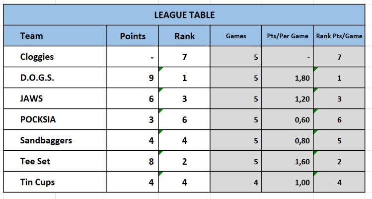Nonetheless despite the interuptions of large groups of female golfers parading the course dancing to dance music and moving and shaking on the tee boxes all 6 JAWS flights finished well in time and before sunset, as the aerated greens, all well shaven produced very unpredicatble and fast green speeds that resulted in one or two high numbers on the scorecards.