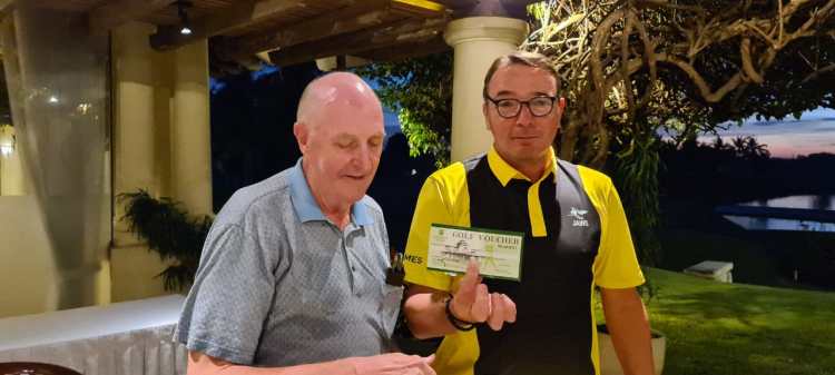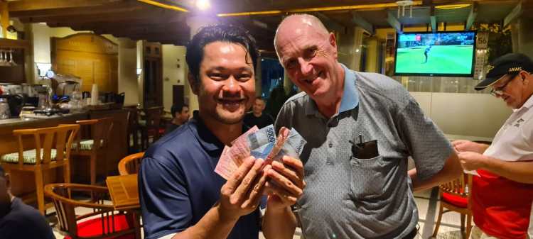 Randy and Arief were having their 1st round match play, supported by Bobby C. And Bram who decided to play their own mini game themselves. Randy didn’t drive well all day while Arief struck his driver onto almost every fairway… whilst both players putting well on the greens. Unfortunately Randy’s up and downs lacked precision and he couldn’t compete with the scrambling of Arief who overall was much more consistent all round winning the matchplay 2 & 1. Bobby C and Bram S clearly enjoyed each others company over 18 holes as both put together steady and solid rounds of Nett 71’s taking home a share of Best Nett 3 clearly inspired by the matchplay game in their flight of Randy and Arief.