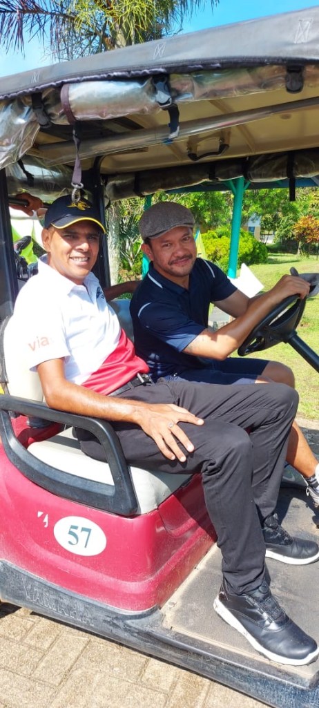 Stef, Emil and Giles played in the first flight at 6:30am. With their round being held up for only 1.5 holes, they managed to get round in an impressive 3hrs 15mins. Stef stole the show with a great back 9 and a nett 69 😉 his short game was a joy to witness. Emil had the luckiest ball ever, even though he tried and tried to lose it in the trees, it managed to find its way back in play! There was no luck, but all skill with the group’s only birdie on the 12 hole. Giles can be described as the Bogey man today. Despite finding many fairways and only 100m left on most par 4, his approaches let him down. At least his chipping was on point with multiple up and downs and a great sand save on 17. Was a great round and many laughs were shared.