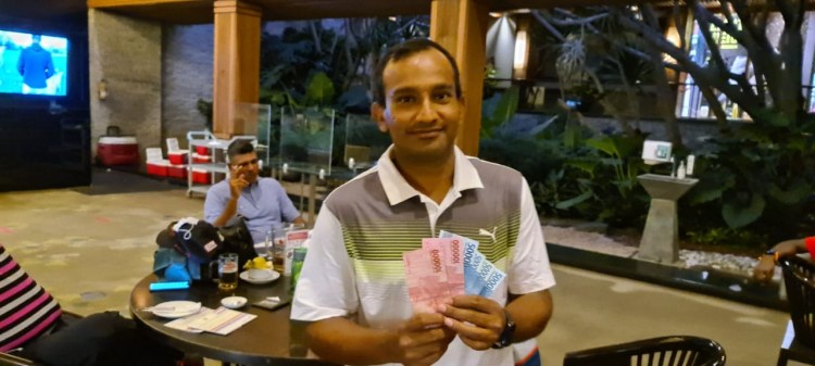 TPS was not his usual self and was spraying his drives all around. He managed to get a solitary Birdie on the Index 1 hole and ended with no pars throughout his round to finish with a unpleasant gross 106. Srinivas was not too far ahead with some very inconsistent golf and ended up with 100 Gross. Willie N on the other hand was struggling to reach the green in regulation on almost all the holes and found himself hitting out of bounds on a few occasion, riding on the back of a few double pars and triple bogeys the sorry day came to an end for him with a gross 96. Gaurav Shirke turned out to be the one eyed King among the three blind in his flight. Being a long hitter that he is; Gaurav consistently hit the GIR and with some great putting on and around the green finished his round with a Gross 86 playing 3 over his handicap just about good enough to win him the Best Net 5 for the day.