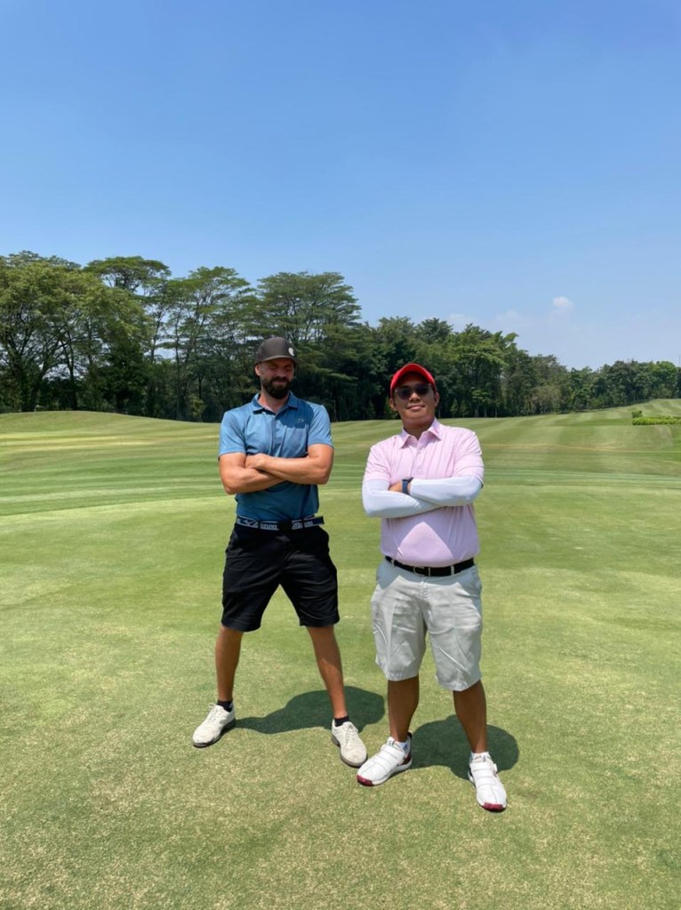 Ruth, Aleksi and Pras were the first group to tee off at the virtually empty Riverside golf club. The beautiful, sunny day was filled with good conversations, lots of laughter but also plenty of mishits of golf swings. The greens at the front nine were aerated which caused plenty of putts and chips to miss the targets. Pras started out strong when he scored two birdies in the first four holes, but too many blow up holes led to him only finishing with a nett 76 for the day. Aleksi started the round with plenty of blow up holes filled with mishit drives that led to plenty of lost balls, but he managed to finish strong with scoring pars in the last five holes. Aleksi finished the round with a nett 83. Ruth was having the most consistent round of the group. While her driver was rather inconsistent, her short game was in the best form of the three today. Ruth finished with a nett 74 and tied for second place for the day.