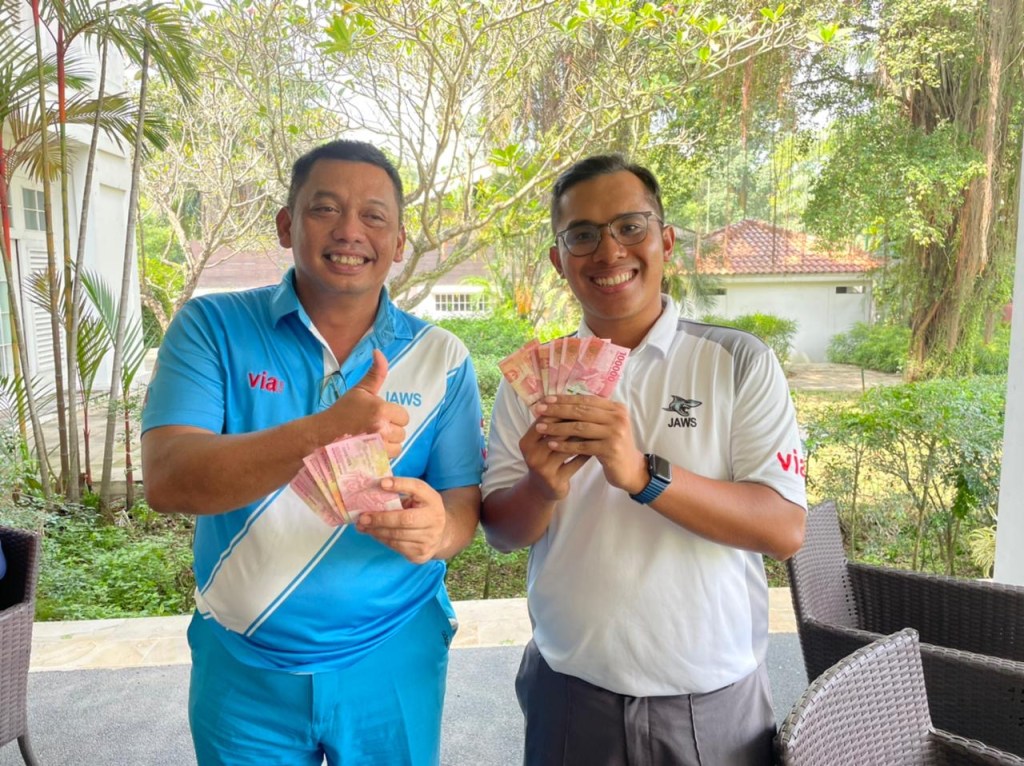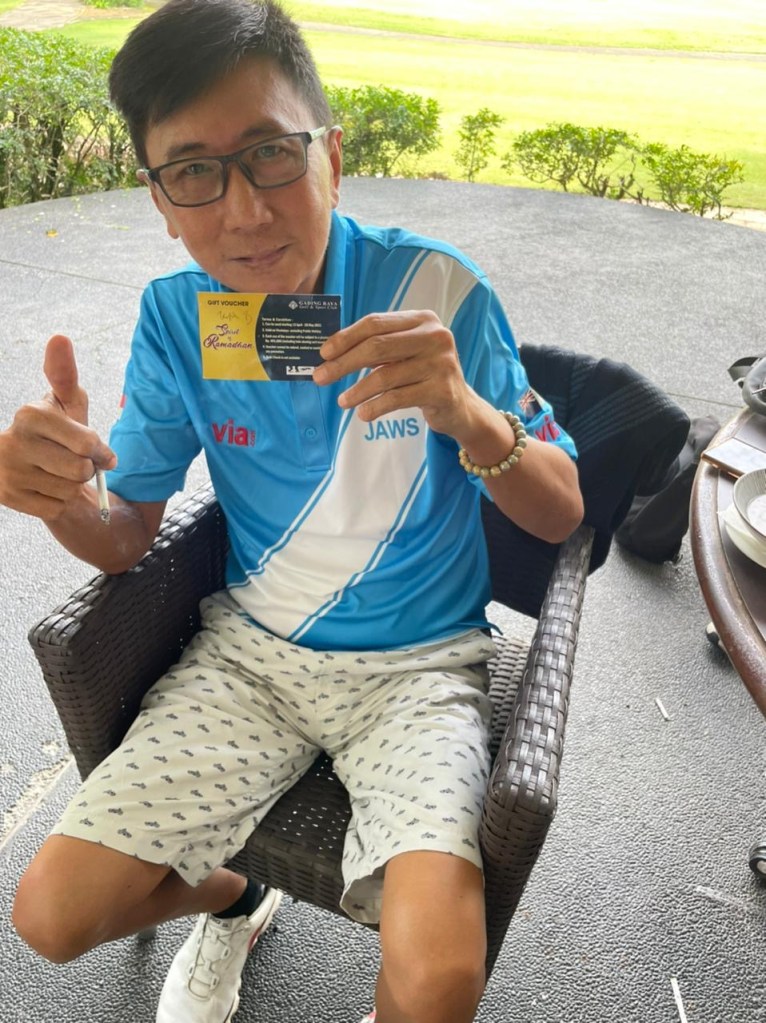 That day is Hari Taufik’s day. After a long absence and to return playing with Jaws, he still managed to score 8 straight pars on the first nine, and 6 straight pars on the back nine. He was determined to have a consistent game, hitting most of the greens in regulation, even though several tee-off’s found fairway bunkers or the rough. He shot 77 overall gross, winning him a shared Best Nett 1 of the day. A game of golf very impressive, indeed for a 11-handicapper!