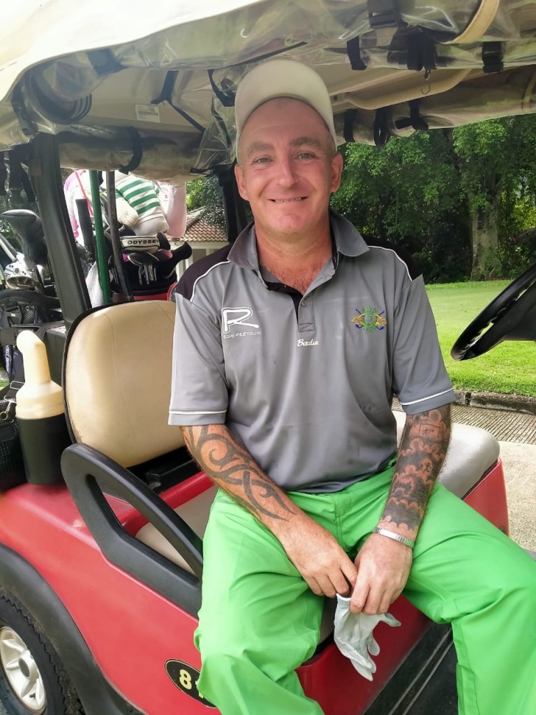 Nick had a strong start with his driver finding spots well down the fairway and his irons finding their distance, almost making a hole in one on 14. He found himself at +1 after ten holes, only to slip at hole 3 and then at the treacherous winding holes 6 and 7. When a branch with a snake wrapped around it fell on the cart path just seconds after he went past, Nick knew he had to keep up the pace. Nick managed to hang on for second place overall. Yudi won the matchplay 2 and 1 after a hard fought game with both players agreeing to play the white tee’s.