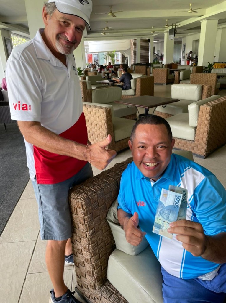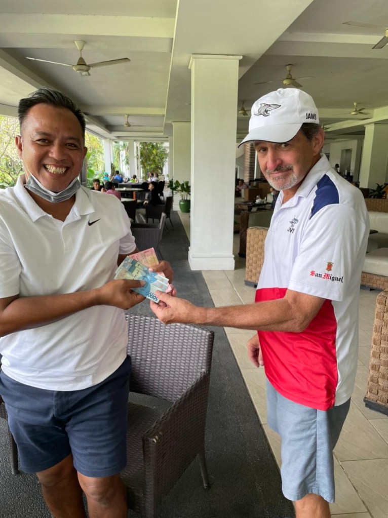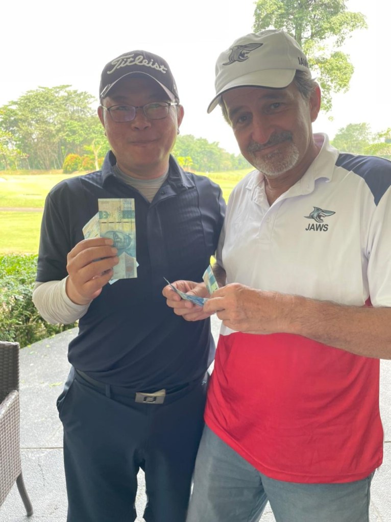 Iris, one of the book makers favourites for this year’s matchplay who play’s a very solid all round game from the red tees. Iris playing her regular game, effortlessly driving onto fairways and hitting green’s she finished the round with a Gross 83 and Nett 69, to share Best Nett 6 and a little lunch money. With the game AS, the match was agreed to be replayed at Bogor Raya and we await the result.