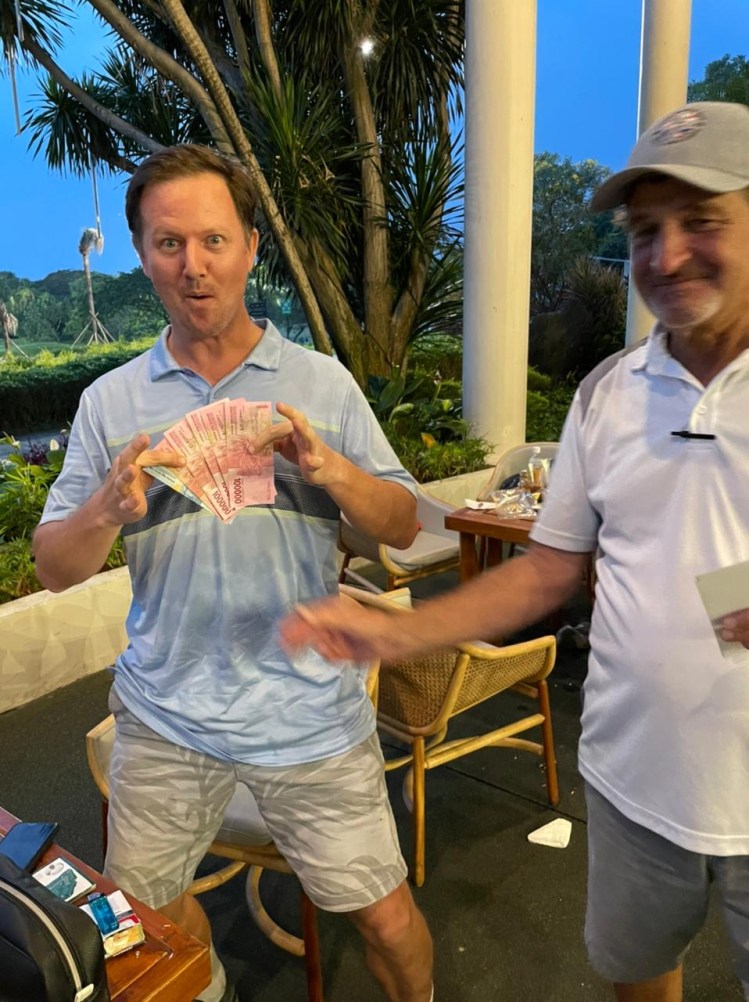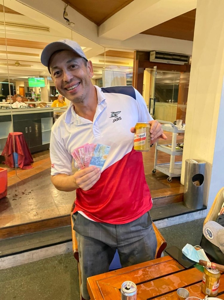Tarlok came to the club house with packs of takeaway-lunch from a local chinese restaurant and to share with everyone in his flight. Scoring a birdie on the first hole boasted his spirits. On the par 3 contest, he was able to rest his ball the nearest to the pin and awarded him a Rp200k prize. He was not the lowest handicap player in the group but a solid performance guided him to obtain a similar 41 gross score on both of front and back nine. This placed him with the 6th best score of the day.