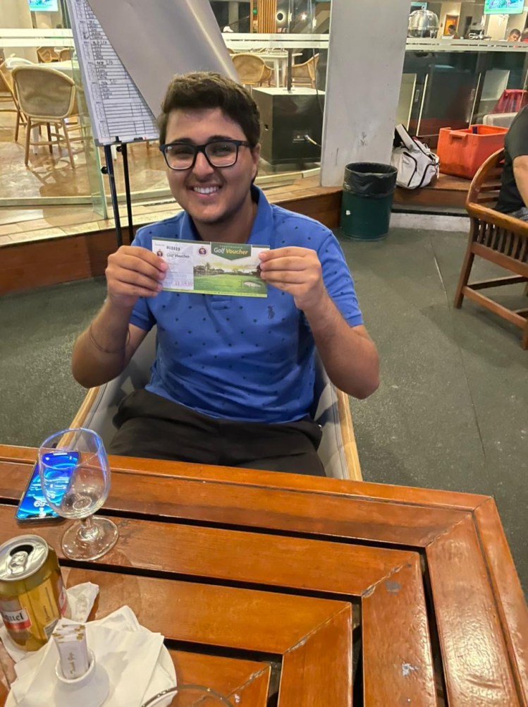 Divya was the first to go and started with an easy par, he would make two more pars, 5 bogeys and 1 double bogey on the most difficult hole to finish with a 43 on the first 9. He continued hitting very good drives from the tees and put himself in prime positions, unfortunately his approach shots and a very cold putter let him down. He still managed a 41 in the back nine with 1 birdie, 2 pars and 6 bogeys to score total 84, net 74.