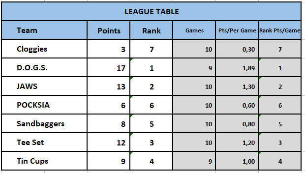 - Round 3 INTERLEAGUE, kicks off Sunday 23rd May at Riverside, with The JAWS captained by Simon Reynolds positioned well in 2nd place and are moving in the right direction. With DOGS in 1st Place, JAWS have a chance to chase down the gap of 6 points as they play DOGS in 2/4 matches Good luck to Simon and his team! All is to play for with 4 more rounds still to play.
