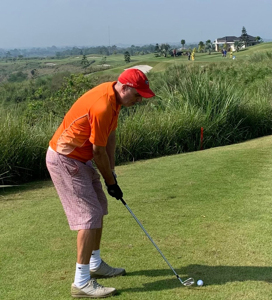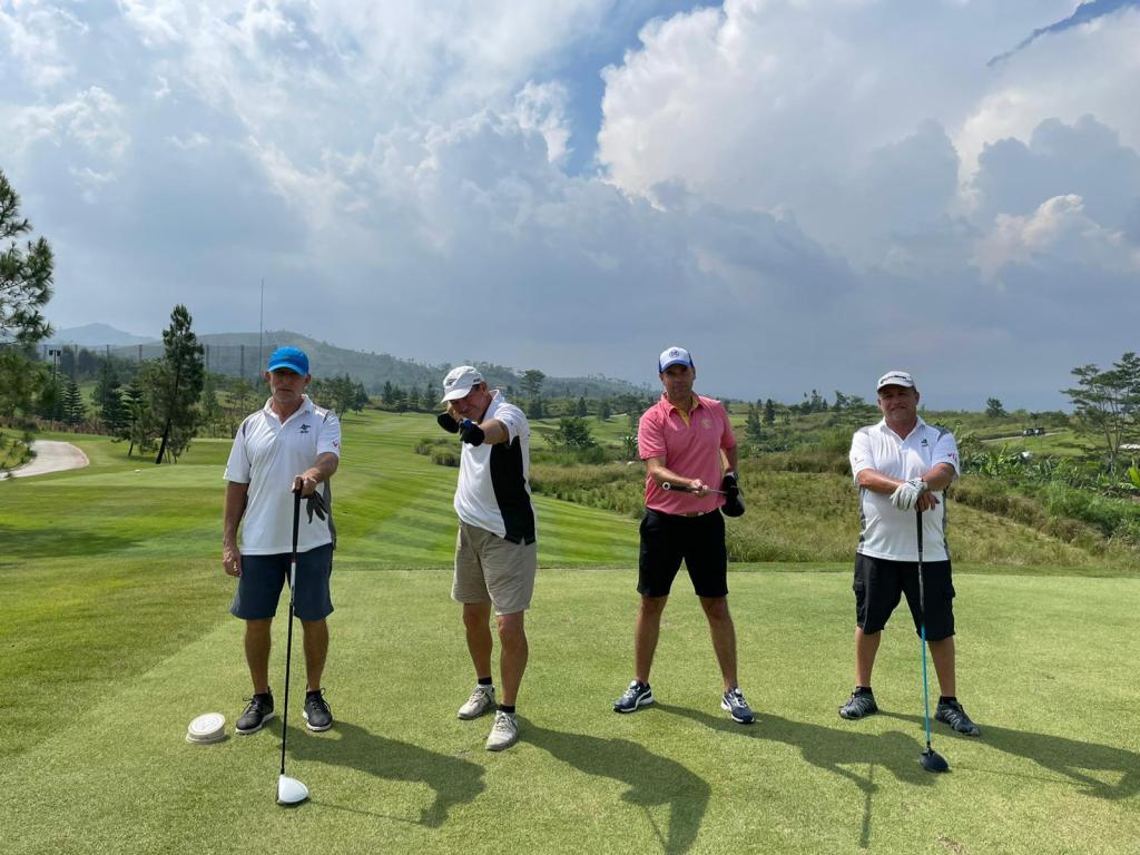 With Drinks flowing and cigars lit, the JAWS sharks relaxed and enjoyed the crisp and cooler Bandung temperature, reminiscing about the day’s play earlier, with the rooftop bar and restaurant on the 8th floor the chosen venue. A big thanks to the management for kindly agreeing to extend their opening hours until 22:00. With a 8:00 am tee time looming the next day and 18 holes of Golf to settle the 36-Hole event, players retired back to their rooms to prepare for the final days play. Whilst black clouds, and light rain threatened to spoil Day one’s play a member of the JAWS admin team prayed to the weather gods before bed time to ensure favourable weather for the final round.