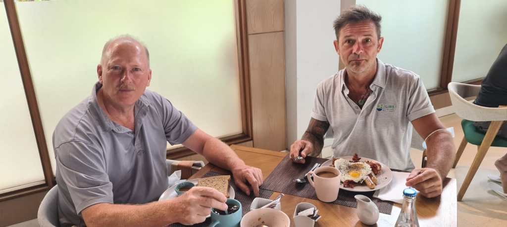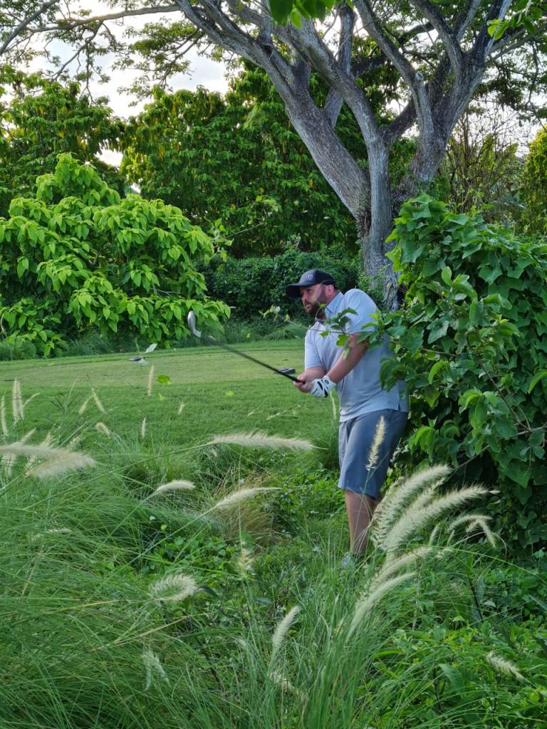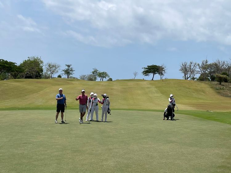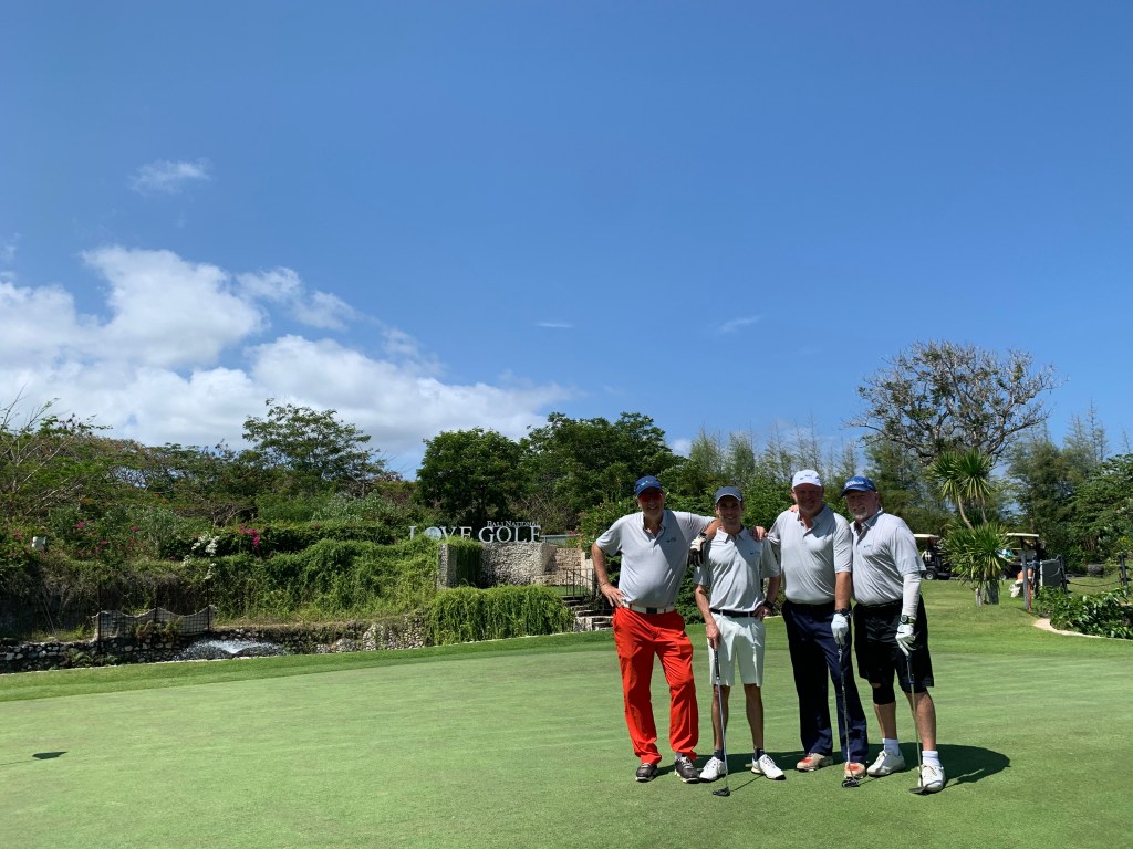 Blue skies, sunshine and a Golf Course in pristine condition greeted the players for Day One and after a hearty breakfast and some rest the players boarded the bus for the short drive to Bali National. The short bus from the Hotel allowed plenty of time at the course before tee off to soak up the course vibes, hit balls, chip and putt and stretch. At 1215 all players were raring to go in their golf carts and ready to whizz off to their designated tee boxes for the 1230 semi-shot gun start.