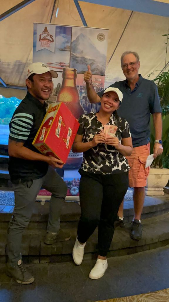 Well played to the winning combination of Bram and Okkie, showing the power of ‘synergy’ amongst men and women competitors playing in harmony, they tore up the course with their big drives and assertive putting bringing home the birides and nonchalantly, even had the time to drop a reel on instagram for their fans, respect guys! very well played! 24 cans of San Miguel due reward for their teamwork out on the links, and a few more followers on IG, sure of it.