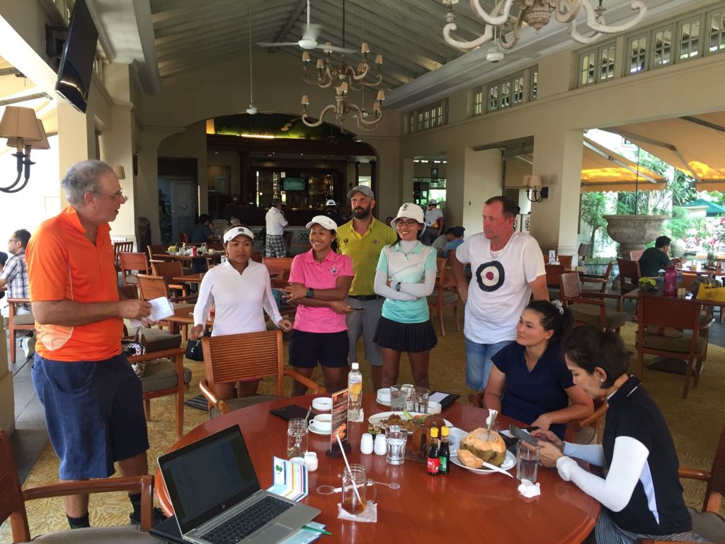 A warm welcome back to David and Reysia Moore, Juju Juriah, Rully, Lok and Indonesian Ladies Pro Dea Mahendra who played off the Blue Tees with the men.