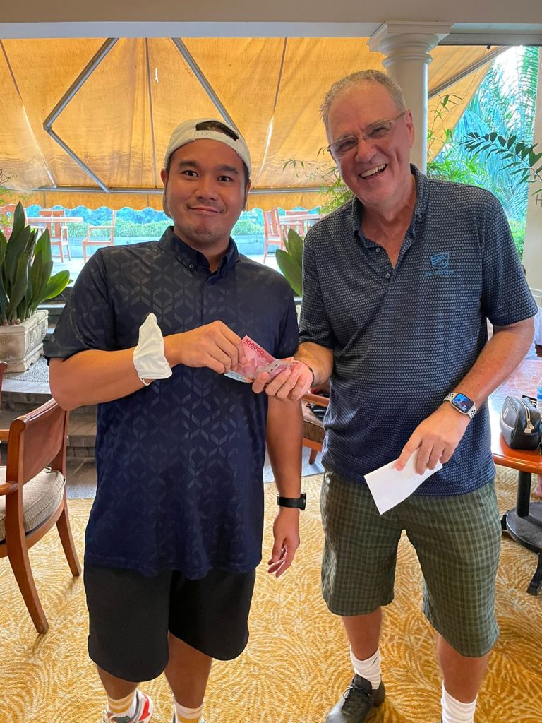 Sunday is the regular D.O.G.S. day with the big dog on the line so Tee Set is joining the day to keep prize giving simple at the end – all registrations and pairings will be managed by Rod Williams and please register in mygolf2u. Tee off at 12pm shotgun start. To help those suffering from the night before, Meadow and Bone are organising a breakfast roll and tasting at hole 4 and other thanks and appreciation to them for the support. Golf on Saturday and Sunday is Rp950k a round.