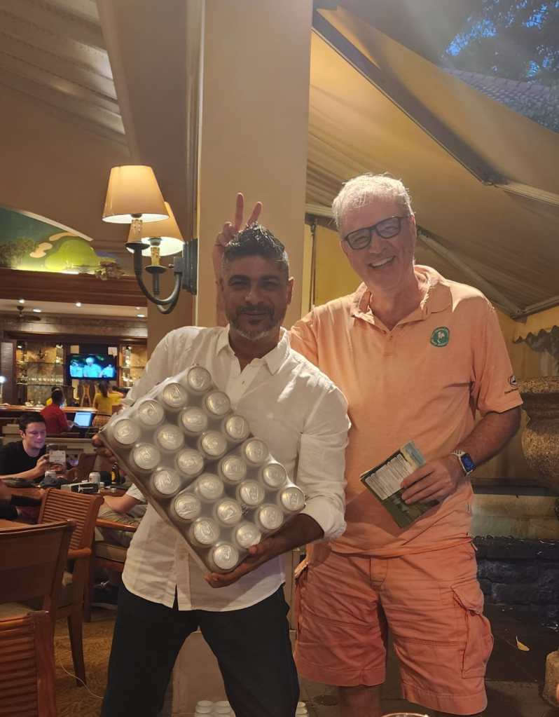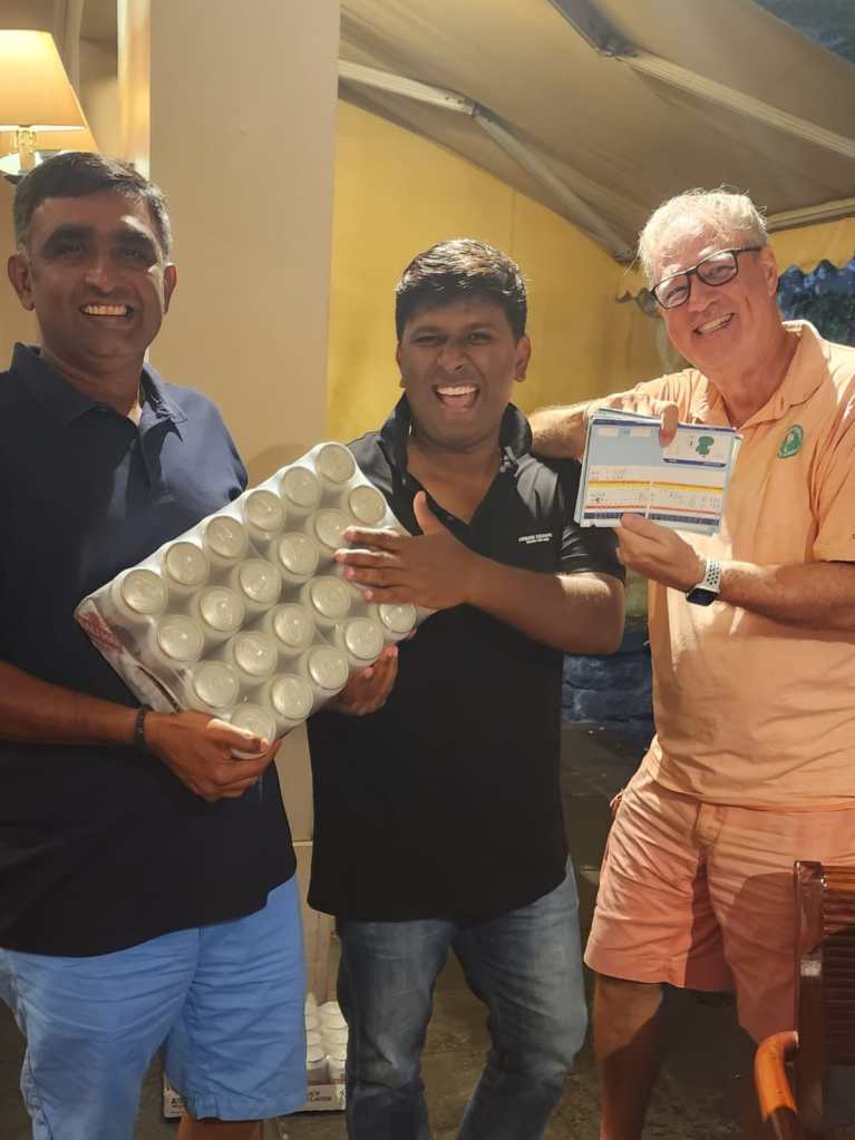 Local boys Willie Noronha and Srinivas Murthy put their course knowledge to good use going deep into red figures with a Gross 70, nett 64.35 to take home first place. Murthy was delighted to take home all 24 cans as Willie N is a teetotaller.